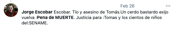 No parecieron entenderlo así en la redes sociales, con el tio abuelo Jorge Escobar cuando fue detenido y formalizado.